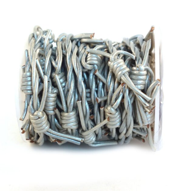 Be the first to review “1.5mm Leather Barbed Wire Cords, Metallic Steel Grey”