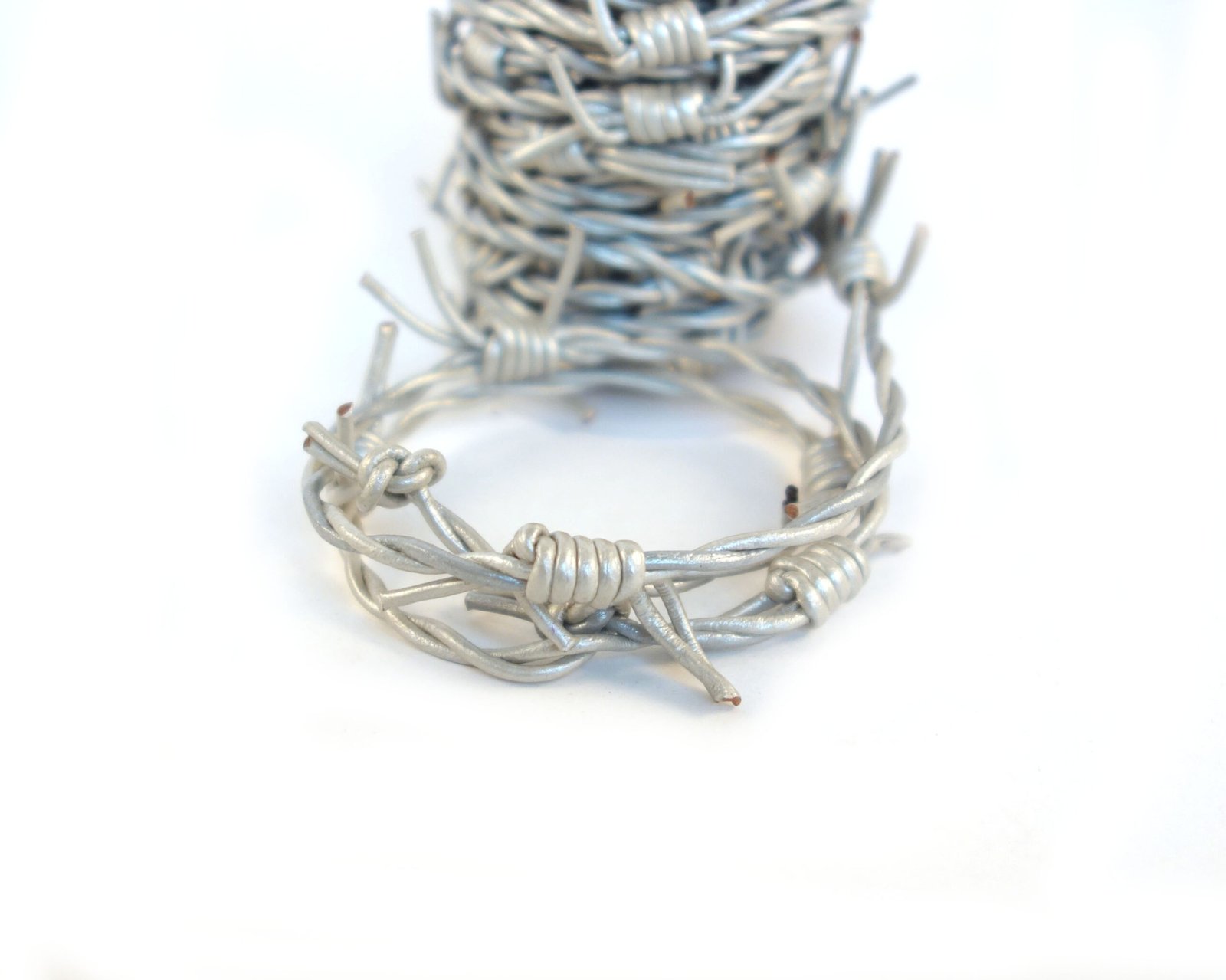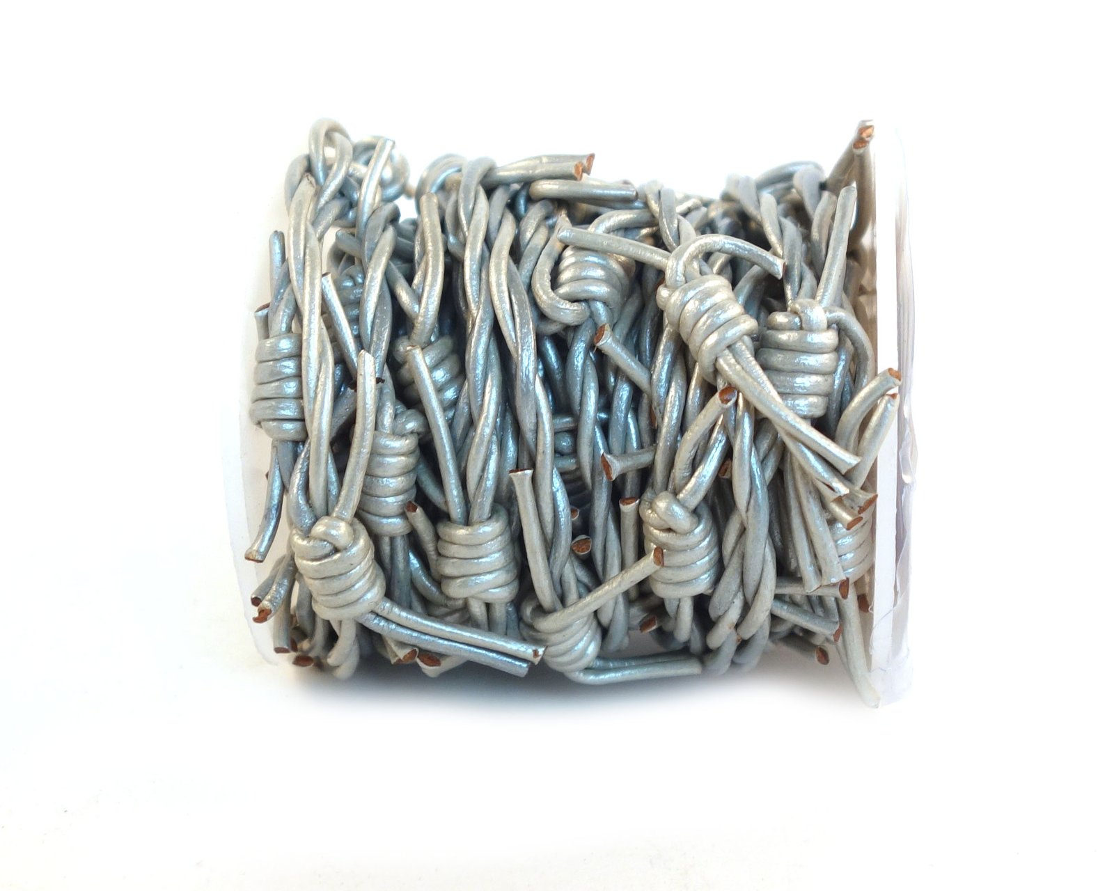 1.5mm Leather Barbed Wire Cords, Metallic Steel Grey