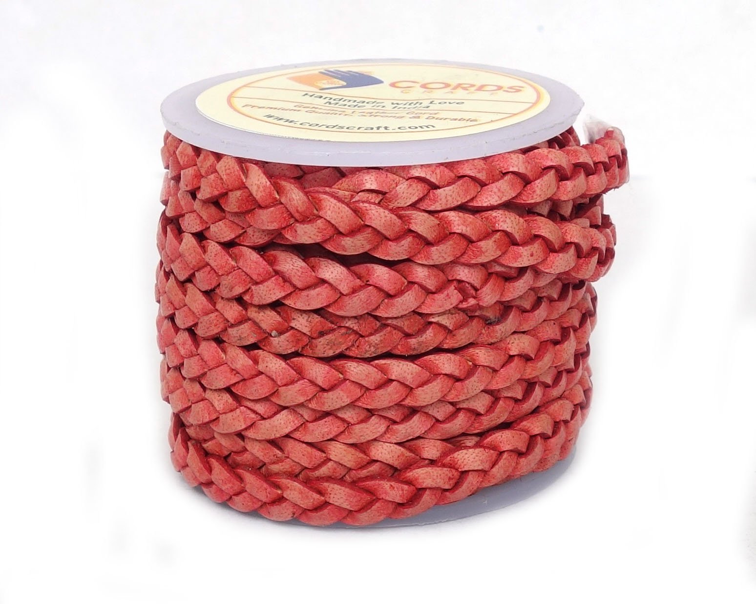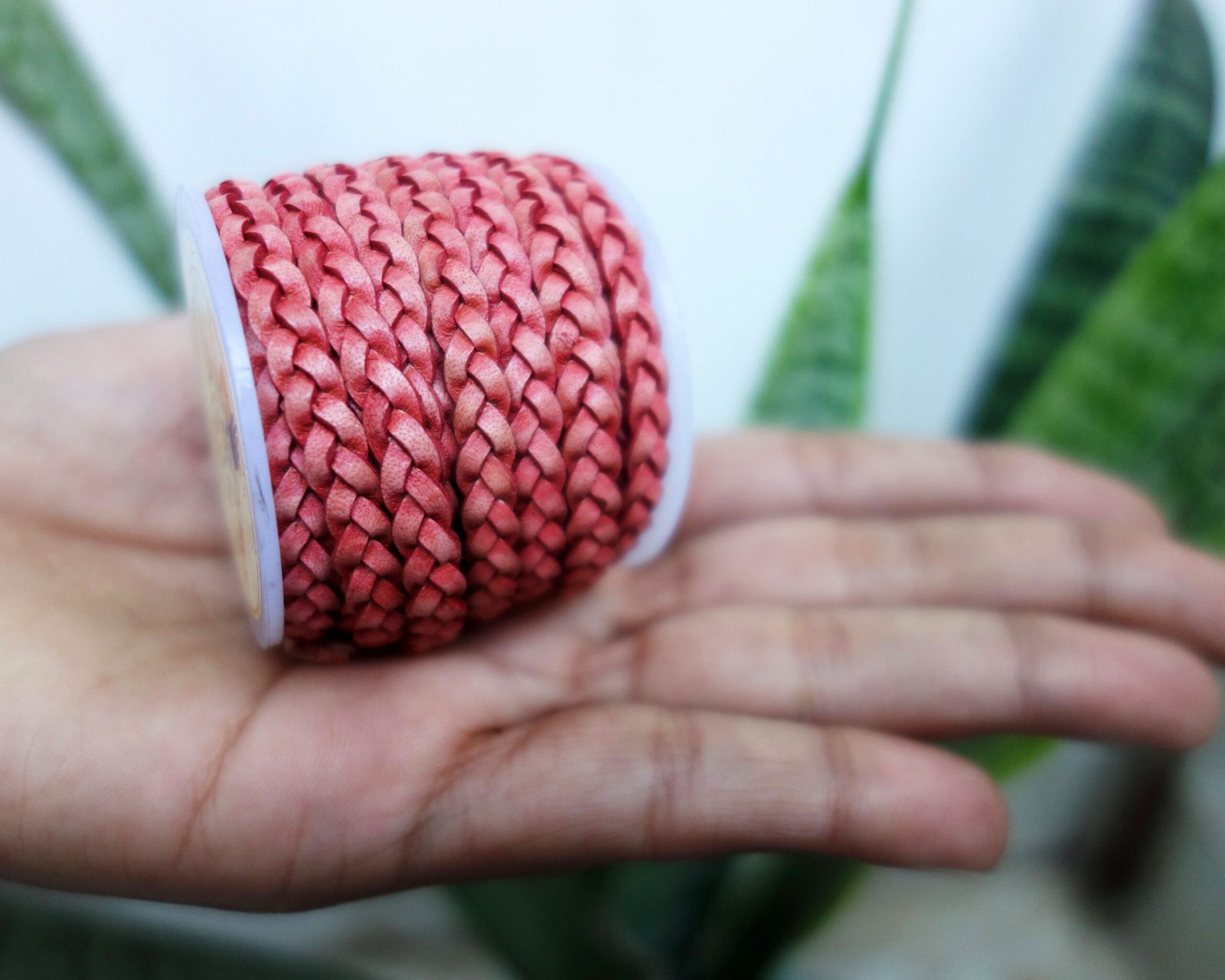 5mm Flat Braided Leather Cord, Fuchsia Vintage