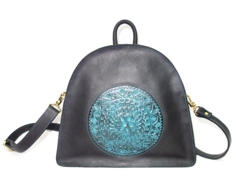 Hand Tooled Front Panel Beautifully Hand Colored, Leather Back Pack for Women.