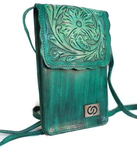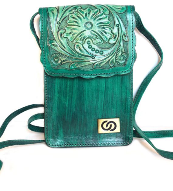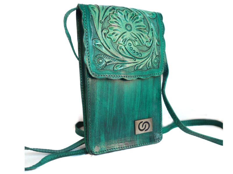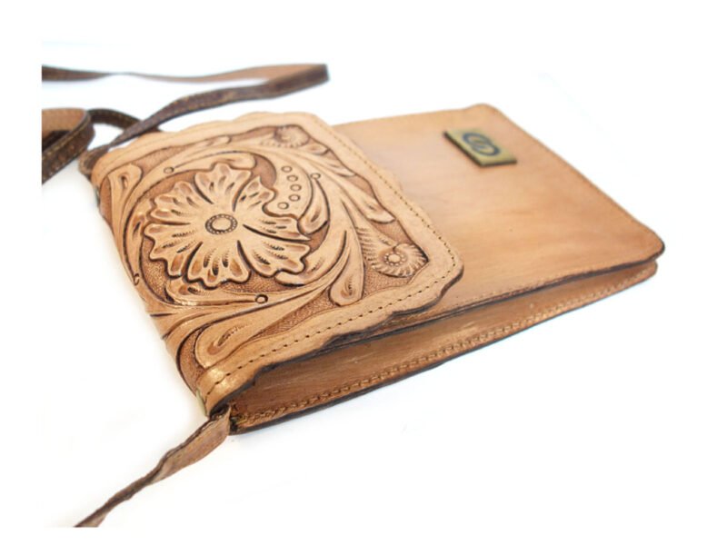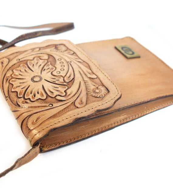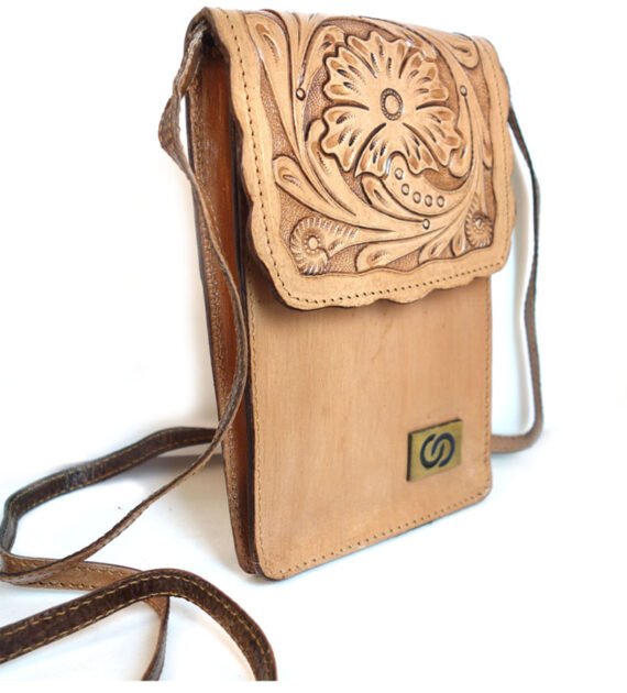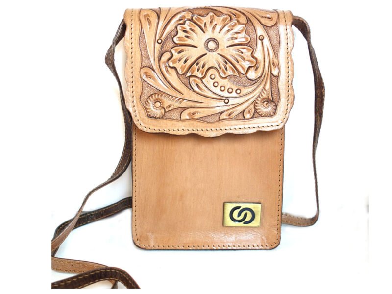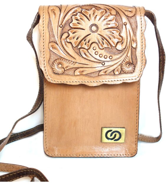 Handmade Leather Bag Embellished with Beautiful Flower Handcrafted