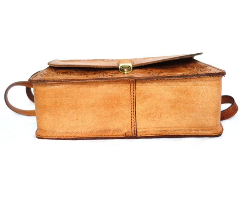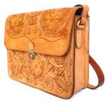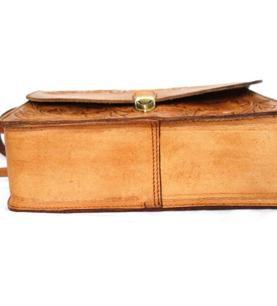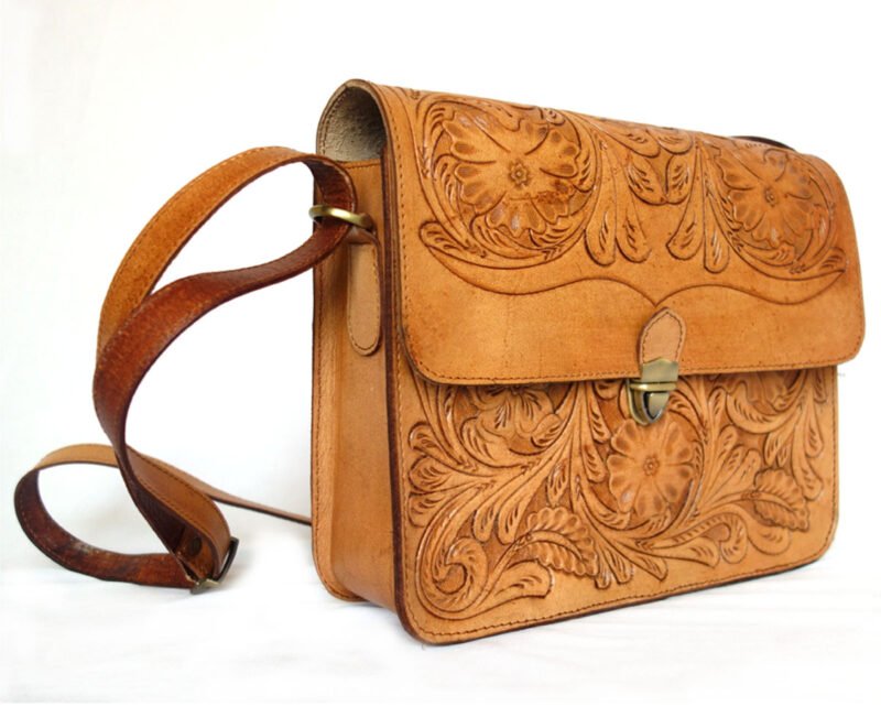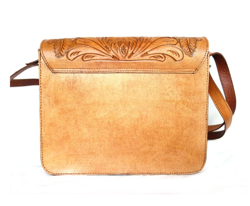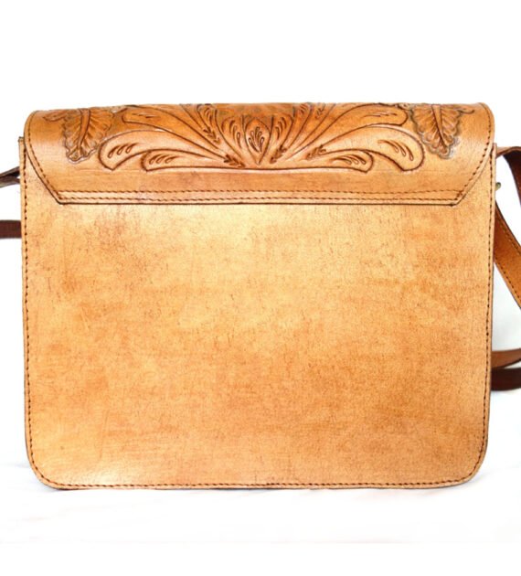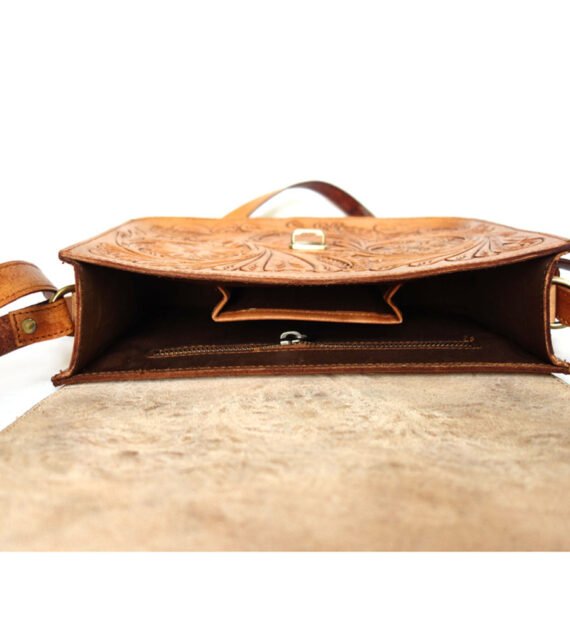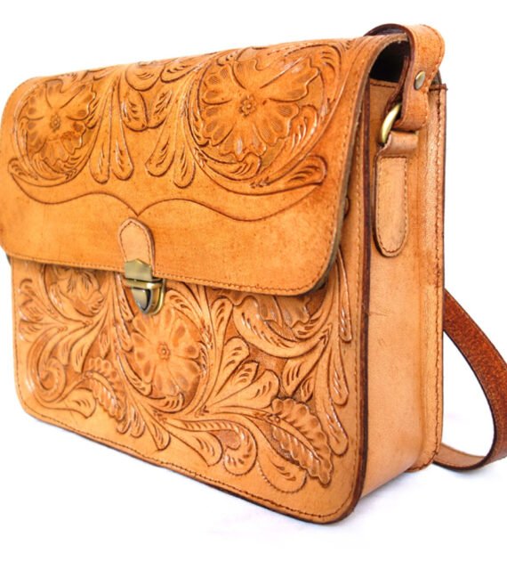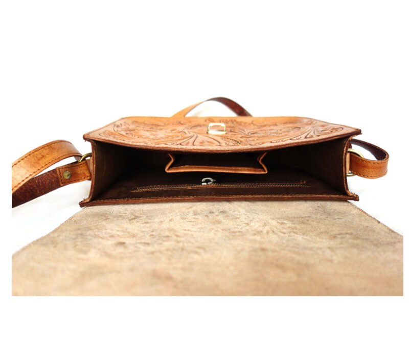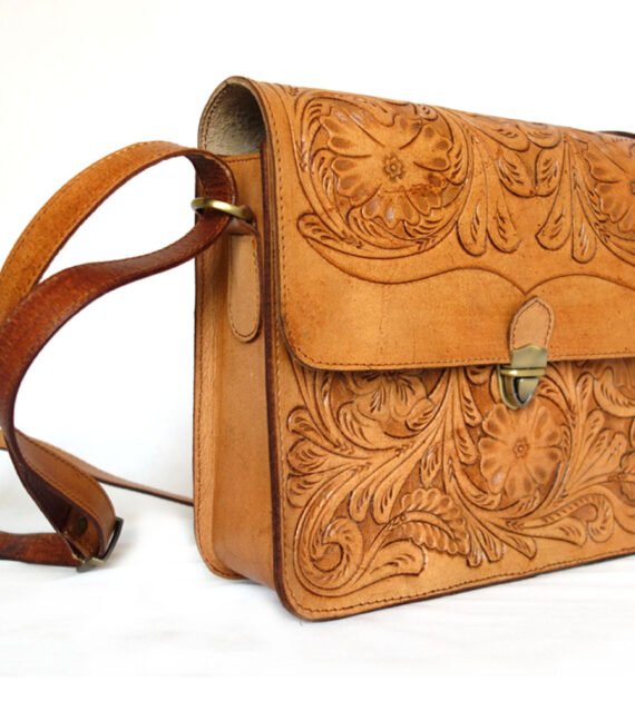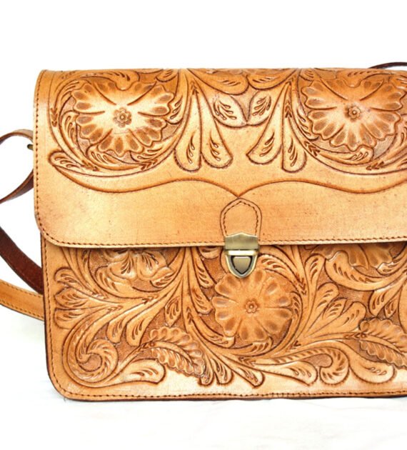 Hand Crafted Leather Crossbody Bag, Embellished with Floral Designs.