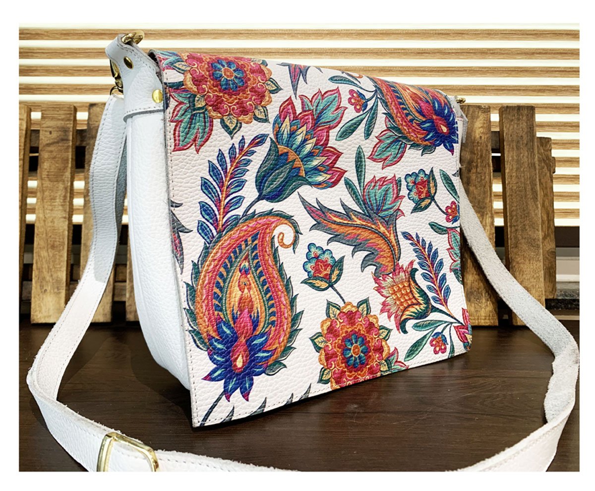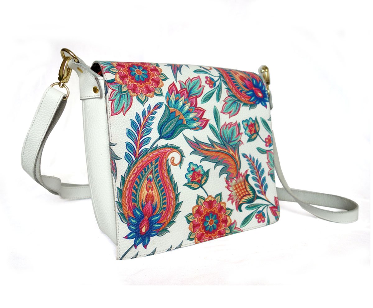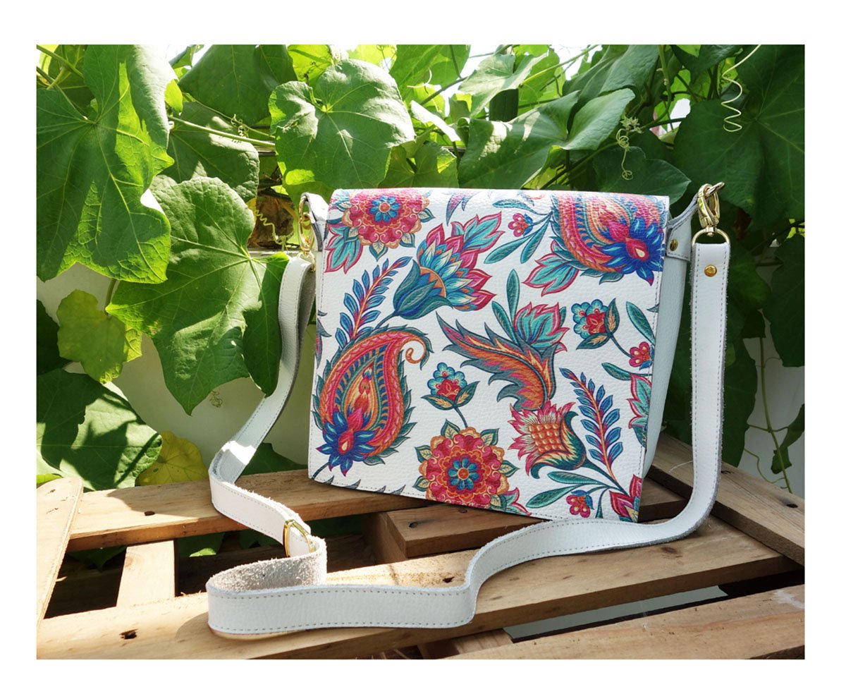 Handmade Leather Crossbody Bag, With Floral Print.