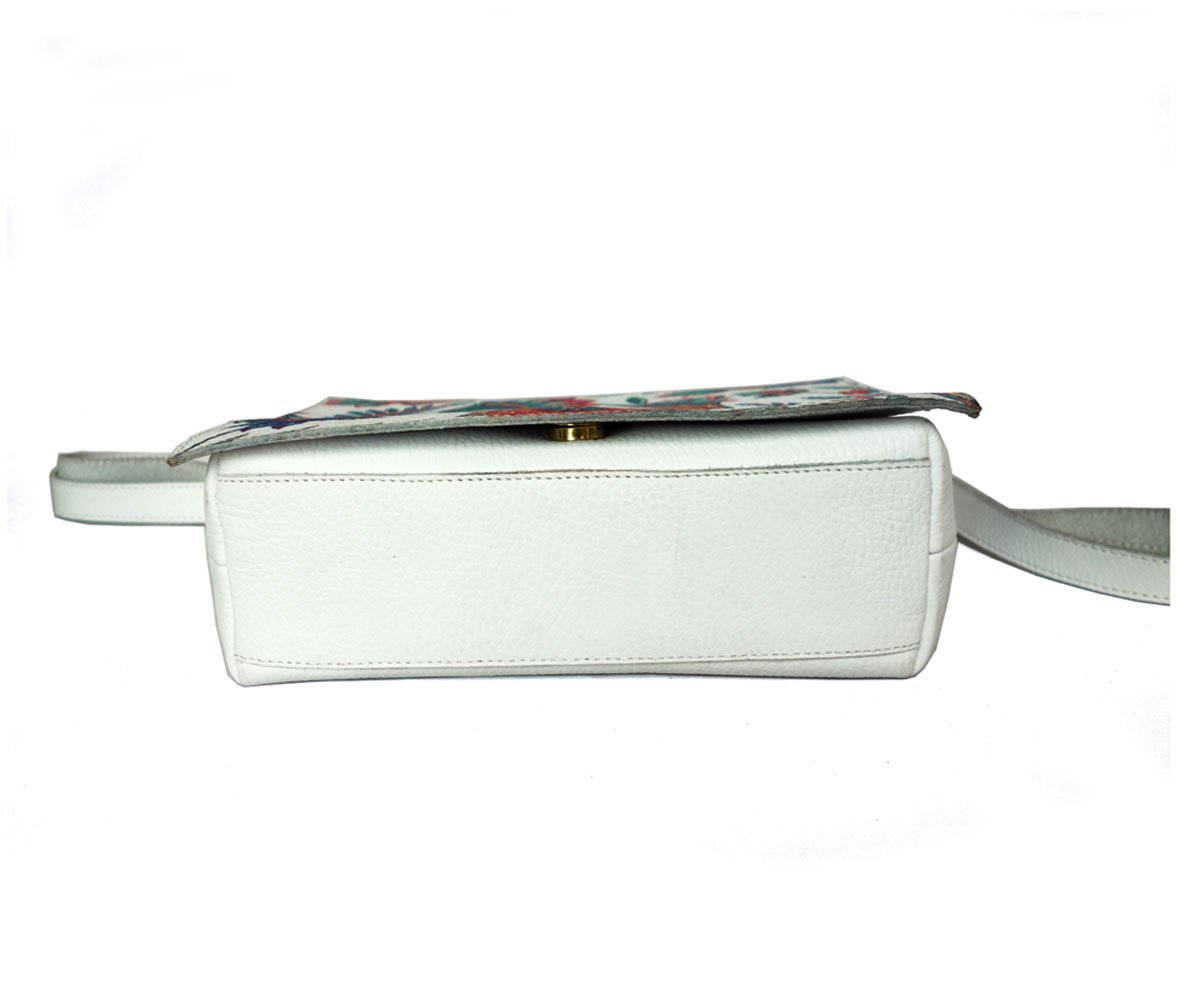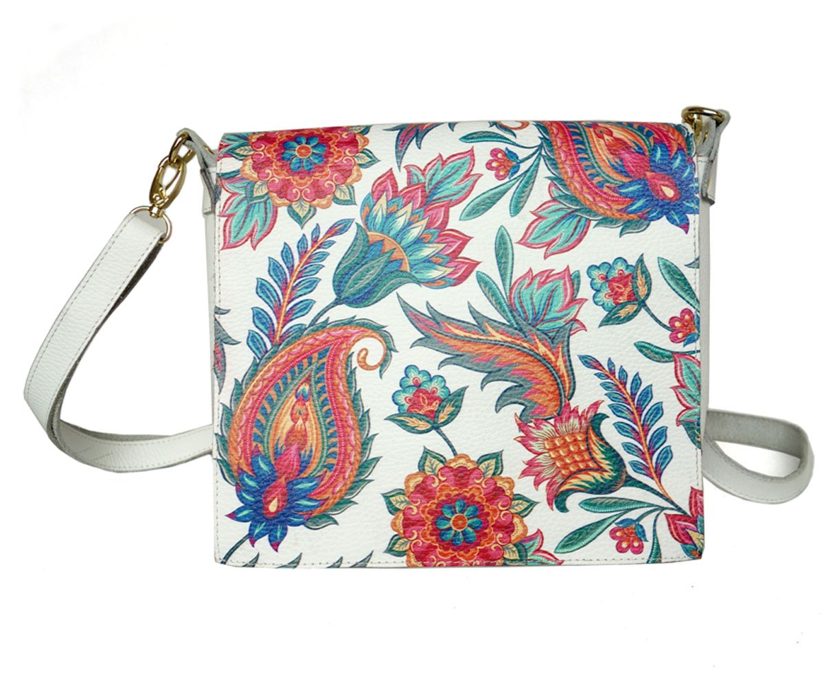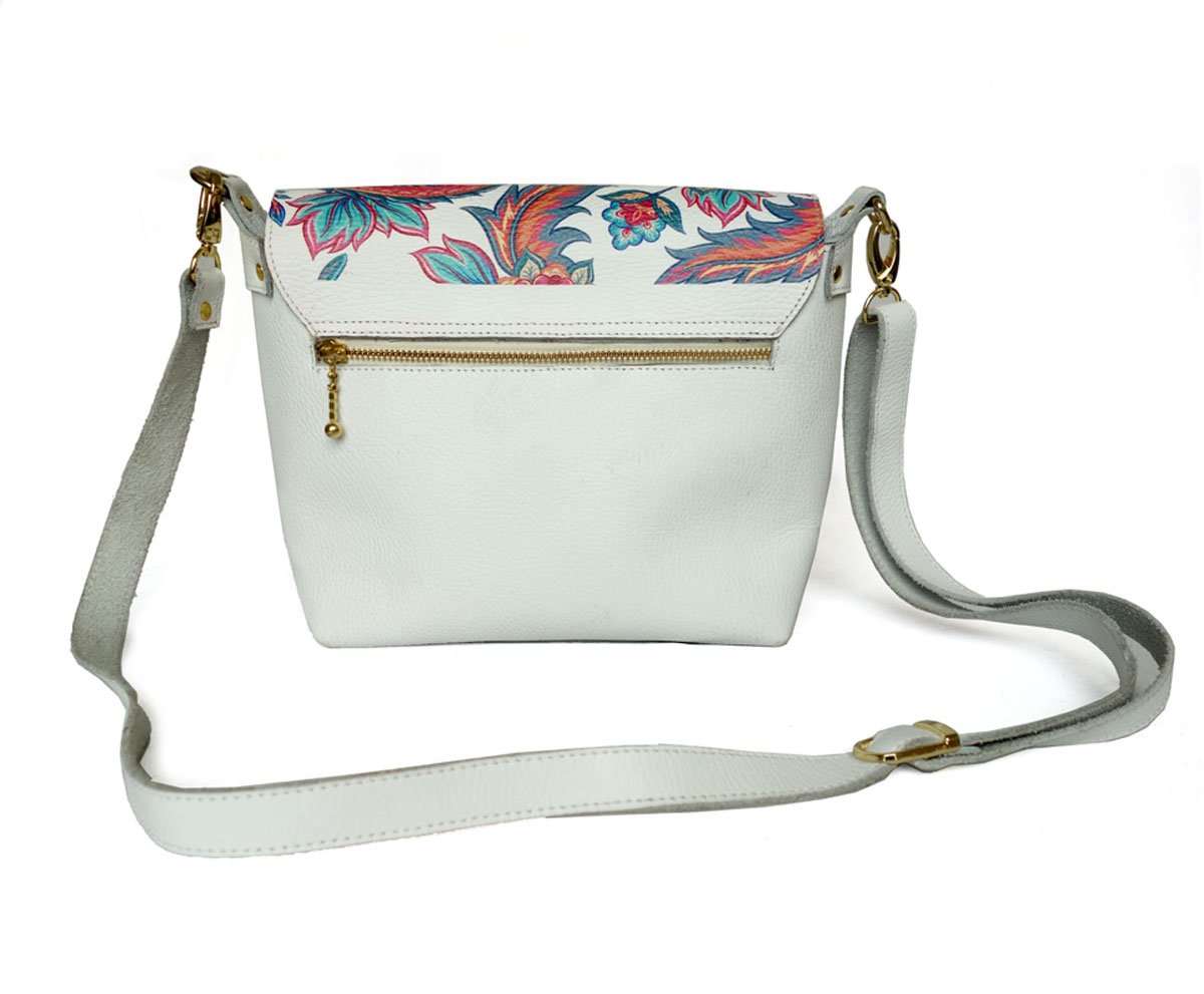 Handmade Leather Crossbody Bag, With Floral Print.